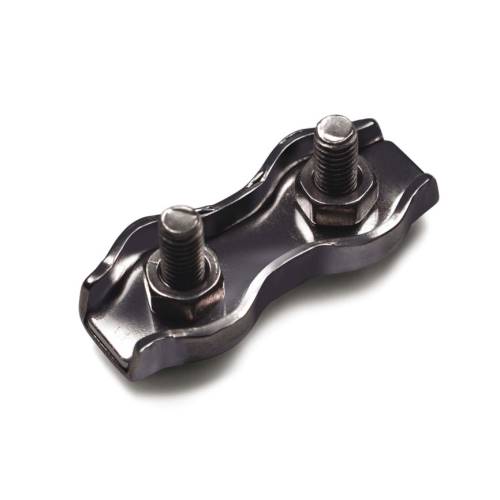 • Sujetacables plano doble para cable de 4 mm. Sujetacables plano doble en acero C-15 cincado para cable de 4mm. Longitud 43 mm Anchura 17 mm Tornillo M4 Permite un rápido y seguro montaje al disponer de una placa que es apretada mediante dos tuercas