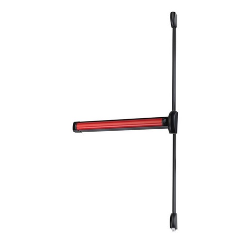 CISA Anti-pânico Série FAST Touch versão overlay com trava lateral anti-cartão, acabamento preto/vermelho. Certificações; Marcação CE e certificação voluntária de qualidade P do ICIM de acordo com a norma EN 1125 Teste satisfatório de 500.000 ciclos.